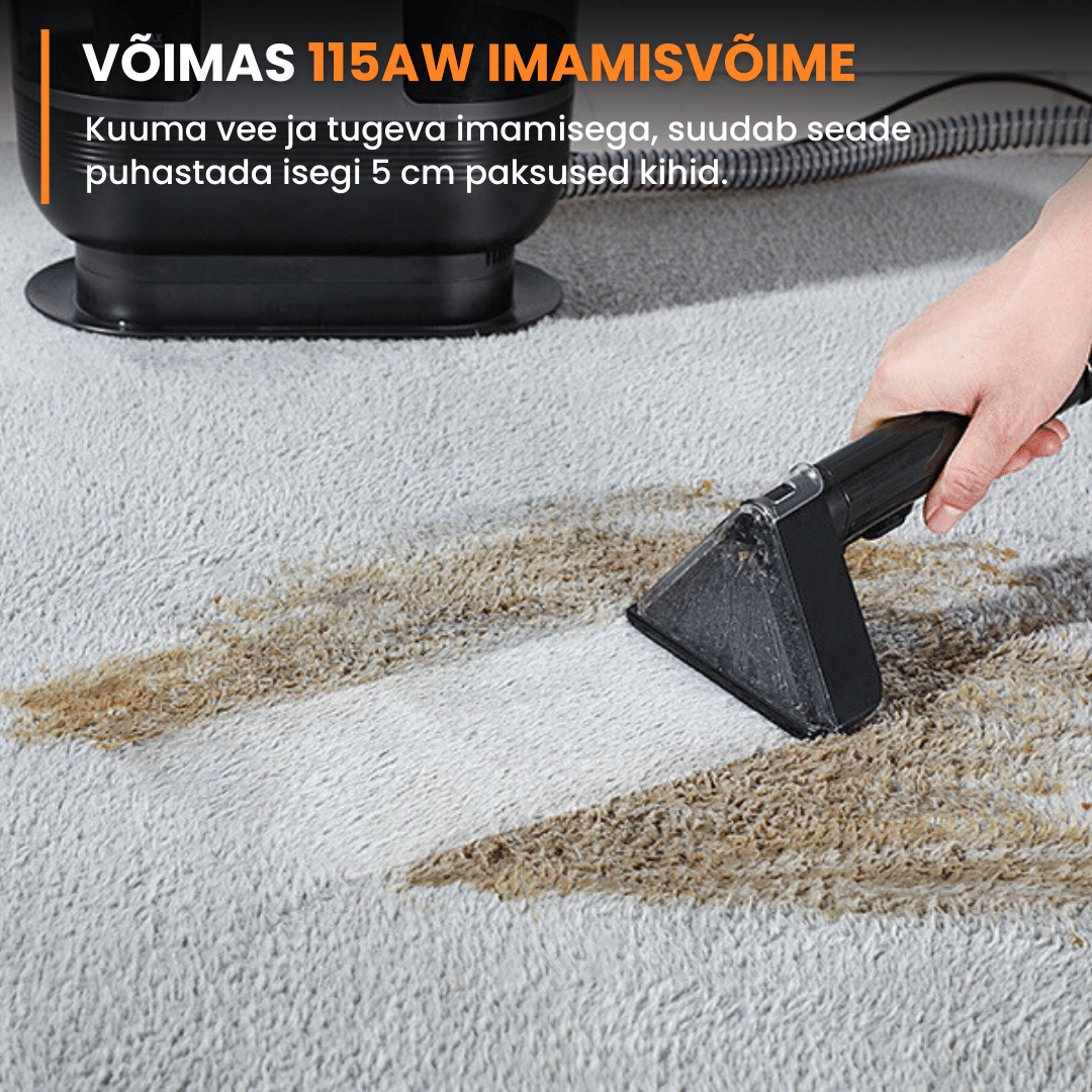 Kasutades kuuma vett ja võimsat 115AW imemist, saab see tõhusalt puhastada kuni 5 cm sügavusi kihte. See sobib kangekaelsetele plekkide jaoks ja kangaste kangastruktuuride värskendamiseks. Seade sobib ideaalselt vaipade, diivanite, toolide polstrite, madratsite ja erinevate kangastest pindade puhastamiseks. Ideaalne igapäevaste plekkide eemaldamiseks, mis on tekkinud toidust, joogist ja lemmikloomadest. Puhastab tõhusalt ka autoistmeid ja sisustuse plekke, elustades nende välimuse.